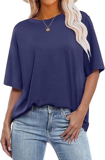 Womens Oversized T Shirts Short Sleeve Crewneck Tops Casual Loose Basic Tee Shirts 2024 Summer Trendy Outfits