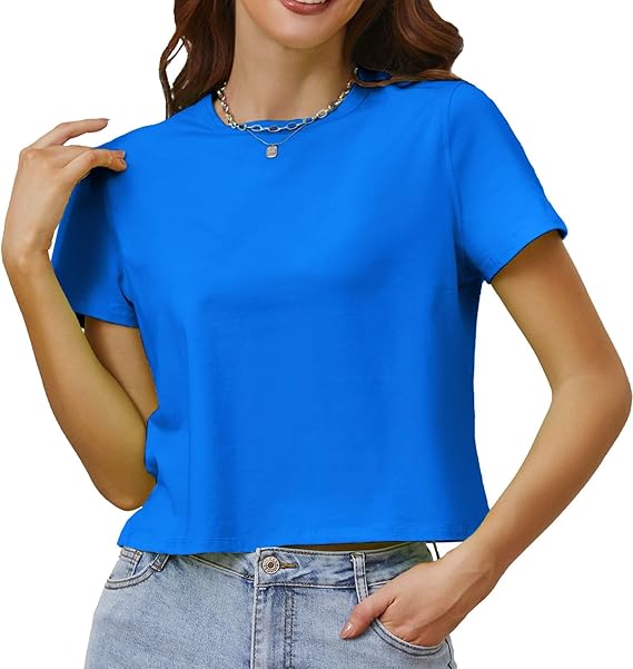 Cotton T Shirts for Women Loose Fit Casual Crewneck Basic Tee Tshirts Short Sleeve Crop Workout Tops