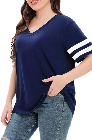 Womens Plus Size Tops Summer Short Sleeve Casual Loose Tunic V Neck Tee T Shirts 1X-5X