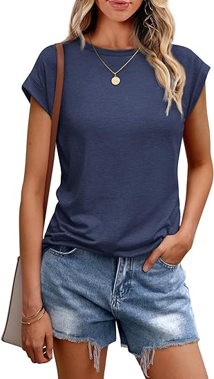 Womens Tops Summer Basic T Shirts Business Casual Loose Fit Cap Sleeve Tee Cute Clothes Trendy Fashion Outfits