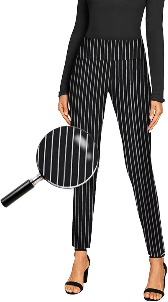 Women's Striped Pants Color Block High Waisted Wide Leg Casual Work Office Long Trousers