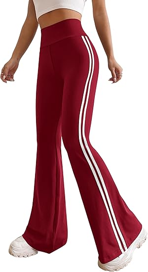 Women's Summer Yoga Pants High Waisted Sweatpants Casual Striped Bootcut Flare Workout Leggings