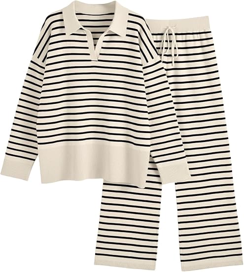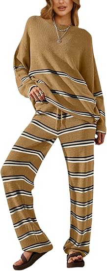 2 Piece Outfits for Women 2024 Winter Fashion Oversized Striped Sets Cozy Loungewear Knit Clothes