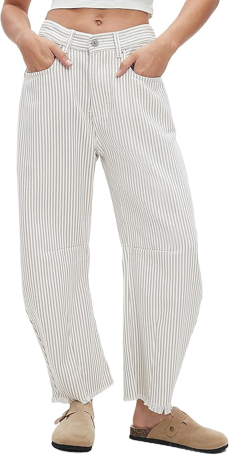 Women Stripe Barrel Jeans Casual Loose Denim Jeans Wide Leg Baggy Pants Mid Waist Boyfriend Jeans Y2k