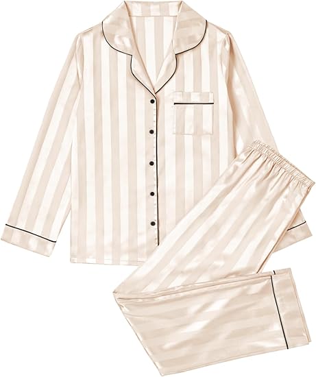 Women's Silky Striped Pajama Sets Long Sleeve Satin Pj Sets