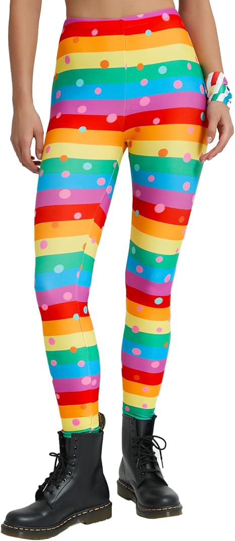 Women's 80s Leggings Buttery Soft Rainbow Stripes Printed Stretchy Pants