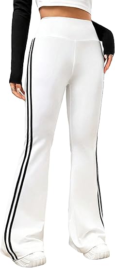 Women's Contrast Striped Elastic High Waist Workout Flare Leg Pants
