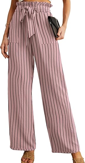 Women's Wide Leg Pants with Pockets High Waist Adjustable Knot Loose Casual Trousers Business Work Casual Pants
